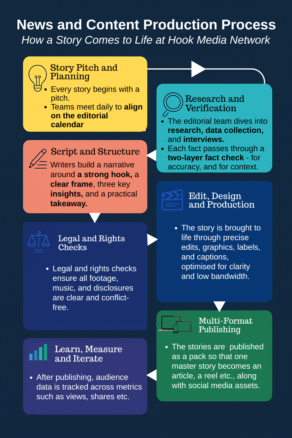 Hook Media Network stands apart through its Curiosity Ladder - a storytelling design that guides users from a quick tap to deeper understanding and actionable insight.